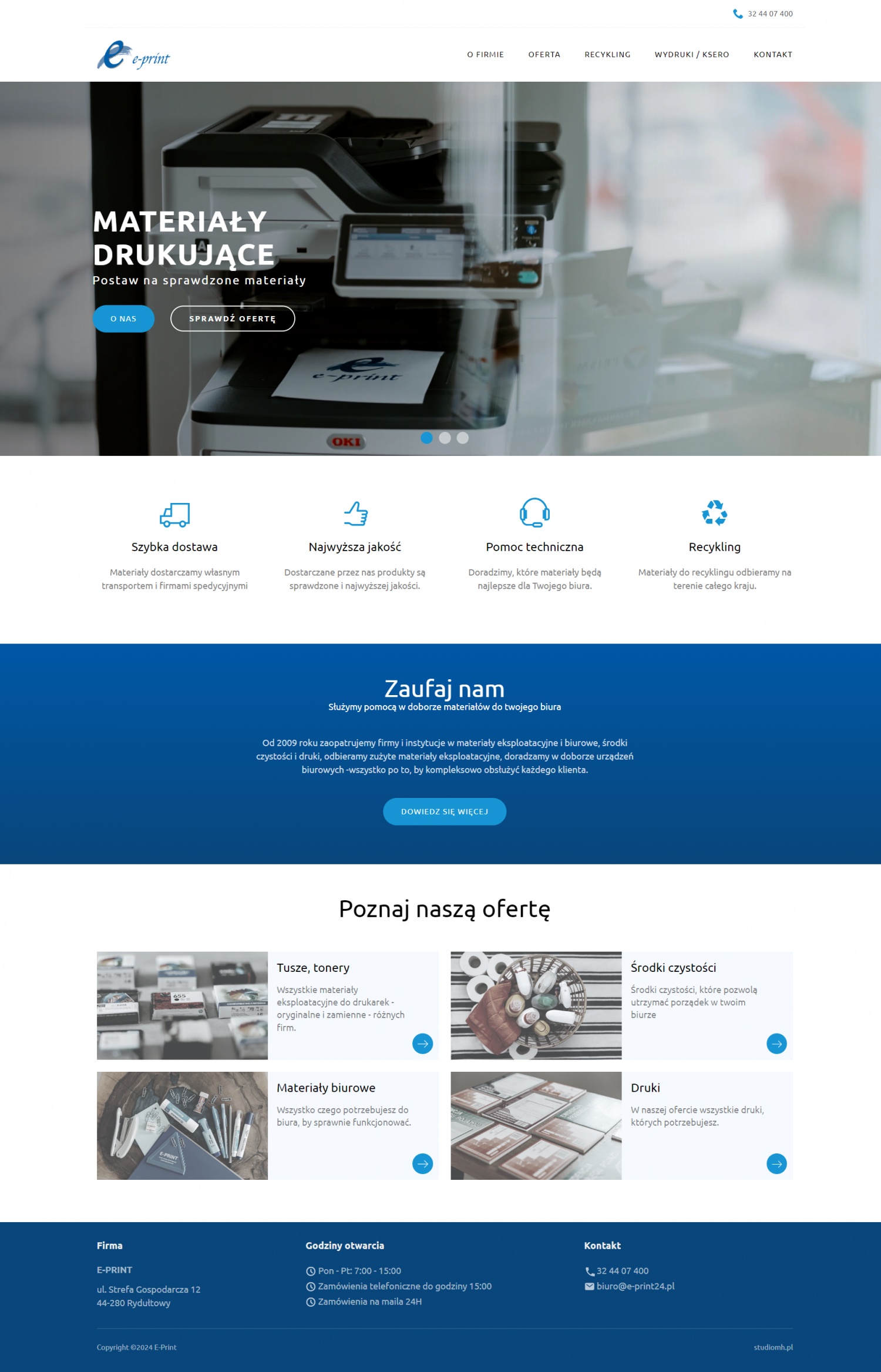e-print24.plOd 2009 roku firma zaopatruje firmy i instytucje w materiały eksploatacyjne i biurowe, środki czystości i druki, odbieramy zużyte materiały eksploatacyjne, doradzamy w doborze urządzeń biurowych
